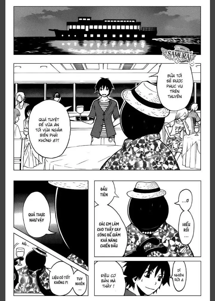 Sáu tiếng bắt đầu từ Tokyo, lớp E đi bằng du thuyền đến hòn đảo nghỉ dưỡng. Trong suốt chuyến đi, người không vui nhất có lẽ chính là Koro-sensei.