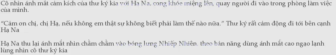 Cô gõ cửa, nhẹ nhàng gọi một tiếng, “Thư ký Diệp.” “Vào đi.” Nhiếp Nhiên không ngẩng đầu lên, vẫn gõ bàn phím