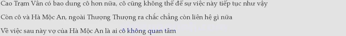 Cao Trạm Vân cười chua chát lại vui mừng, chua chát vì bản thân trở thành quá khứ, mà cũng chỉ có thể trở thành quá khứ, giống như Hà Mộc An sau khi bình tĩnh lại cố gắng không nhớ đến, cười vui mừng vì hai người sau này vẫn1có thể sống tốt, gặp lại vẫn là bạn bè.