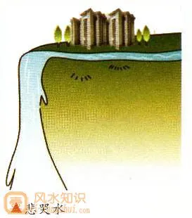*Bi Khốc Thủy - 悲哭水 (trước nhà có nước đổ xuống): Là nước là từ phía trước đổ xuống. Quang cảnh thác nước không chỉ tạo thành dòng thác đổ từ trên xuống mà còn biến thành Bi Khốc Thủy. Bi Khốc Thủy sẽ khiến người không giữ được tiền tài, vợ chồng chia lìa hoặc góa bụa, là một phong thủy rất xấu.