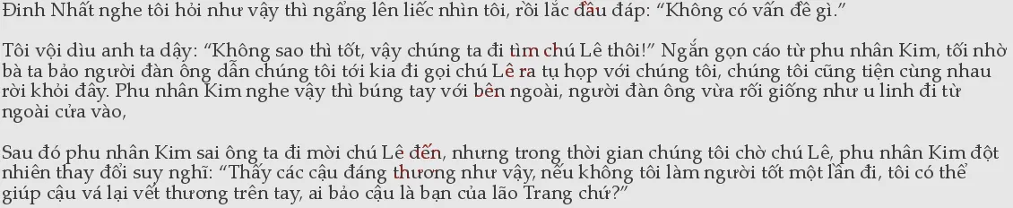 Trang Hà bị tối mắng mà mí mắt giản giật, anh ta thấy tôi tức giận thật nên liên mồm giải thích: “Tôi và cô ta không phải cùng một loài, có phổi cũng sẽ không hấp dẫn nhau. Còn nữa, có tôi ở đây sao có thể để cậu tinh tẫn nhân vong chứ? Hơn nữa từ khóa tâm của tiểu Kim là có thời hạn, tôi muốn để cậu lừa cô ta may lại hôn cho cậu xong trước, đến lúc đó tất nhiên tôi có cách để cậu rời khỏi tiếu Kim! So với hiện giờ vết thương của cậu khó chữa tốt hơn trăm ngàn lần đó!”