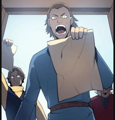 Thế rồi lão thợ rèn hiền hòa mới phút nào lại phẫn nộ đoạt lấy tờ rơi. Chwaak ! Tờ giấy sau đó bị xé nát vụn. Thế rồi ông buông lời trách mắng mọi người.