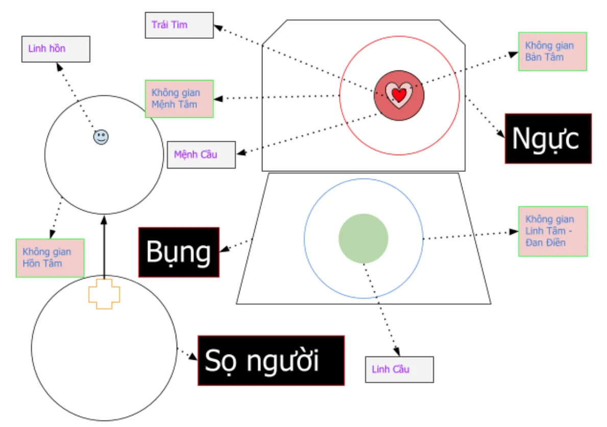 Không gian Bản Tâm: nằm ở ngực trái, chứa trái tim.