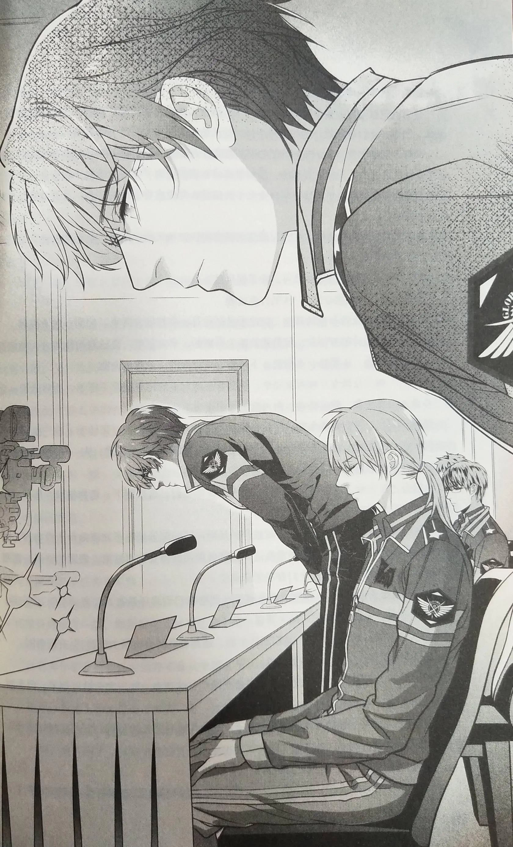 Ba người đồng đội mang tag Bá Đồ cùng dự họp báo đứng dậy, bắt tay Lâm Kính Ngôn, ôm anh và chúc may mắn.