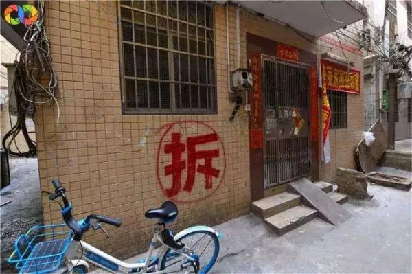 La Cường nhìn thấy tường hai bên cửa, vẽ một chữ ‘phá dỡ’ màu đỏ và vòng tròn xung quanh rất lớn. (*)