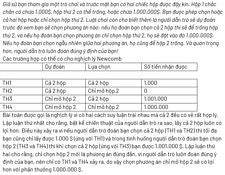 Mình có lời muốn nói: Giải thích nghịch lí Newcomb (⊙_⊙)